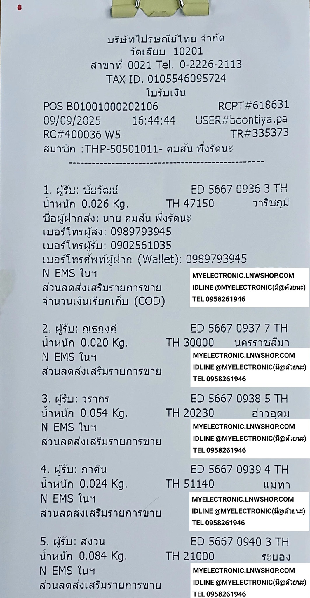 ใบส่งของวันที่09/09/2025คลิกดู…