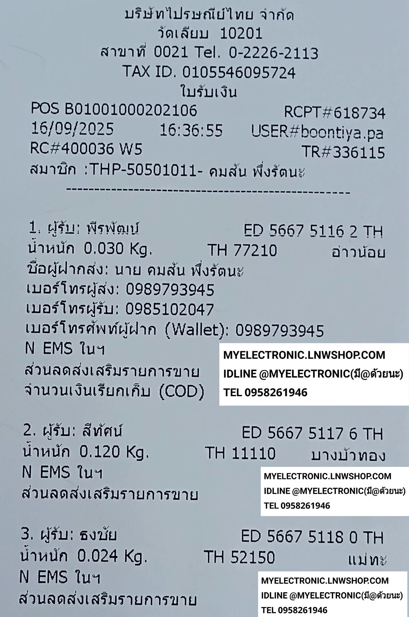 ใบส่งของวันที่16/09/2025คลิกดู…